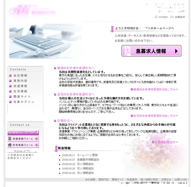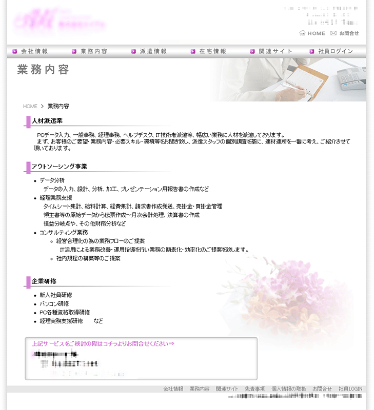 提供を受けたデザインを元にサイトを制作・サイト運用指導
